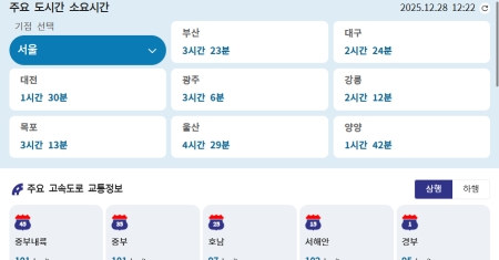 6. 또한, 서울에서 부산, 대구 등 '주요 도시 간 소요시간' 정보도 한눈에 볼 수 있어 전체적인 이동 계획을 세우는 데 참고하면 아주 유용합니다.
