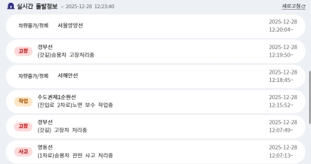 5. 단순히 영상만 보는 것 외에도 '실시간 돌발정보'를 통해 현재 도로 위에서 발생한 사고나 고장, 공사 등의 예기치 못한 상황들을 미리 파악하고 대비할 수 있습니다.