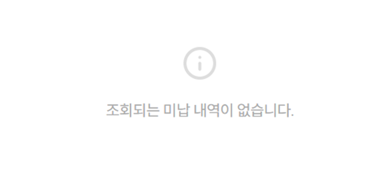 7. 만약 내야 할 통행료가 없다면, 화면에 '조회되는 미납 내역이 없습니다'라는 안내 문구가 나타납니다. 이 메시지를 확인했다면 안심하고 다음 목적지로 이동하셔도 좋습니다.
