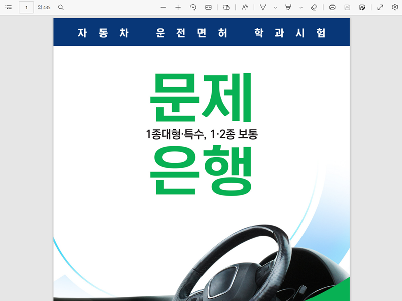 5. 내려받은 파일을 열면 '자동차 운전면허 학과시험 문제은행'이라는 표지를 확인할 수 있습니다. 1종 대형·특수 및 1·2종 보통 면허 시험을 위한 공통 문제집입니다.