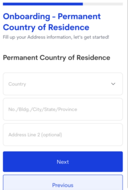 개인 정보 입력이 끝나면 현재 거주하고 있는 국가와 상세 주소를 기입하는 화면이 나타납니다. 영문 주소를 정확히 모를 경우에는 포털 사이트에서 제공하는 영문 주소 변환 서비스를 이용하면 편리합니다. 주소까지 모두 입력했다면 'Next'를 눌러주세요.