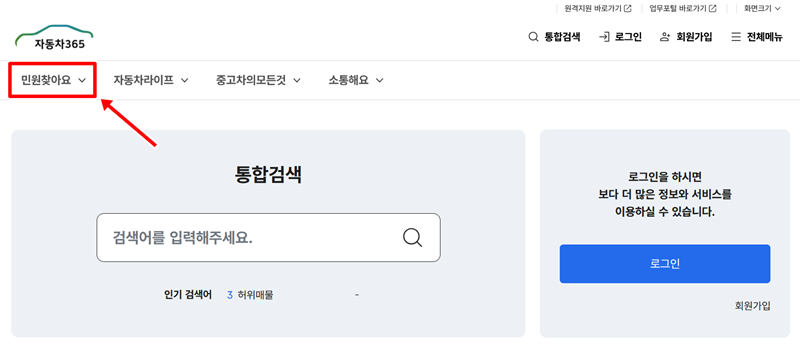 처음 이 과정을 접하면 어디서부터 시작해야 할지 당황스러울 수 있어요. 우선 인터넷 검색을 통해 '자동차365' 홈페이지로 이동해주세요. 홈페이지에 들어서면 상단에 여러 메뉴가 보이는데, 그중에서 가장 왼쪽에 있는 '민원찾아요'라는 항목을 찾아주시면 됩니다. 이곳에서 다양한 민원 관련 업무를 처리할 수 있습니다.