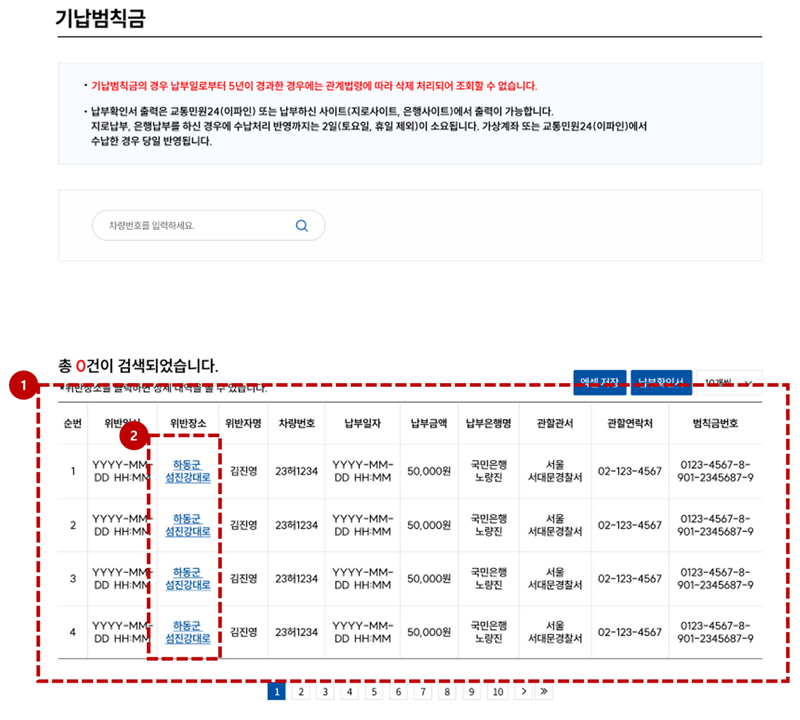 차량번호 교통범칙금 조회