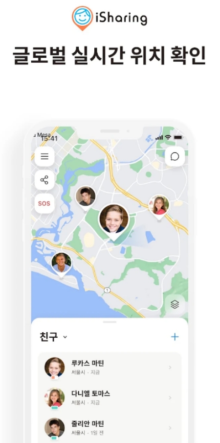7. 기기 자체 기능 외에도 아이쉐어링 같은 앱을 활용하면 지도 위에서 친구나 가족들의 위치를 실시간으로 한눈에 볼 수 있습니다. 전 세계 어디서든 등록된 상대방이 현재 어디에 있는지 즉시 파악할 수 있어 서로의 안전을 확인하는 데 아주 효과적입니다.