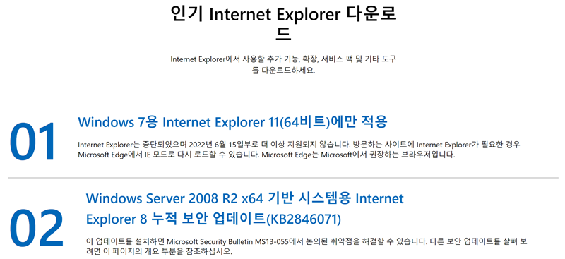 [인터넷 익스플로러 11 다운 - https://www.microsoft.com/다운로드센터]