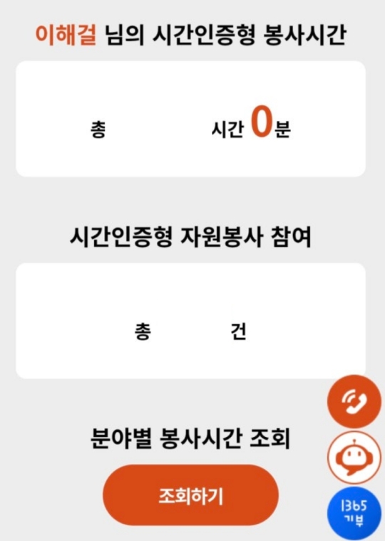 마지막으로 내 이름과 함께 시간인증형 봉사시간이 숫자 0분부터 시작해 내가 채워 넣은 만큼 가득 찬 모습을 확인하는 단계예요. 분야별로 시간이 어떻게 나누어져 있는지 상세히 보여주니 나의 활동 성향을 파악하기에도 아주 좋고, 앞으로 어떤 나눔을 더 실천하면 좋을지 계획을 세우는 데 큰 지표가 되어준답니다. 이렇게 확인을 마치고 나면 다음 봉사를 떠나고 싶은 마음이 샘솟아서 더 활기찬 일상을 보낼 수 있게 돼요.