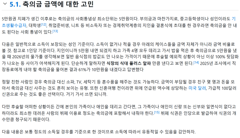 결혼식 축의금 액수