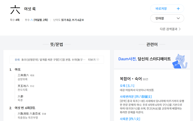 더 자세한 정보가 궁금해서 저는 검색 결과에 나온 해당 한자를 눌러보았습니다. 그러자 상세 페이지로 이동했어요. 여기서는 획수 부수 같은 기본 정보는 물론, 구체적인 뜻풀이와 함께 실제 문장에서 사용된 용례까지 볼 수 있어서 한자를 완벽하게 이해하는 데 큰 도움이 되었습니다.