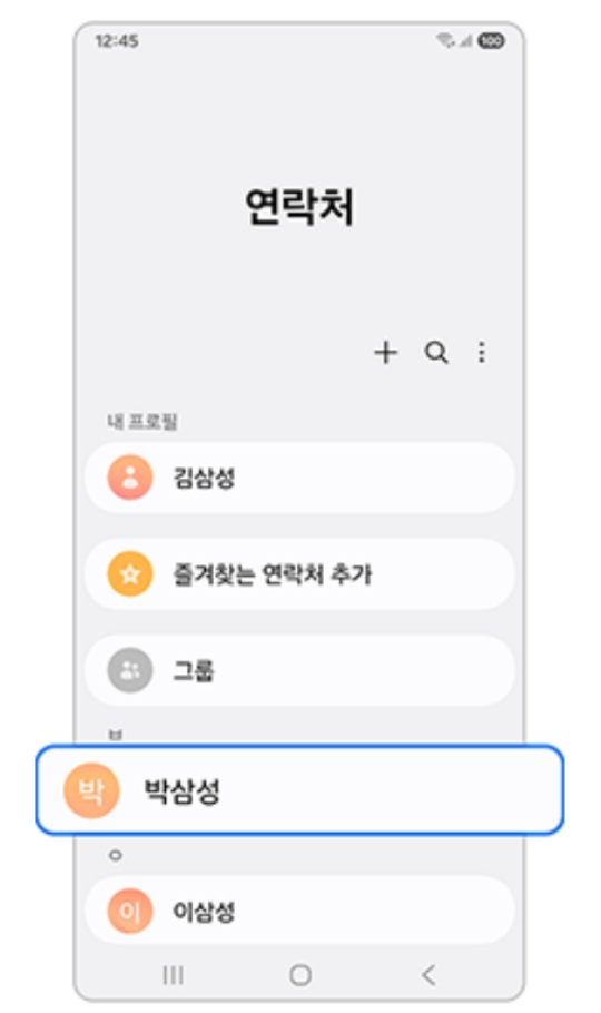 연락처 목록이 나타나면, 특별한 벨소리를 지정해주고 싶은 사람의 이름을 찾아서 선택해주세요. 저는 예시로 '박삼성'이라는 이름을 선택해봤어요. 이렇게 특정인에게만 다른 벨소리를 설정해두면, 화면을 보지 않고 소리만 들어도 누구에게 전화가 왔는지 바로 알 수 있어서 정말 편리하더라고요.