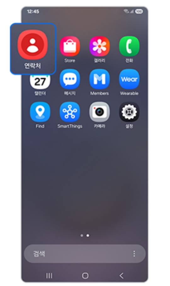 전체 벨소리를 바꾸는 것 말고, 특정 사람에게서 전화가 올 때만 다른 노래가 나오게 할 수도 있어요. 아주 특별한 사람이 있다면 이 기능을 활용해보세요. 우선, 바탕화면에서 사람 모양 아이콘의 '연락처' 어플을 찾아서 실행해주세요.