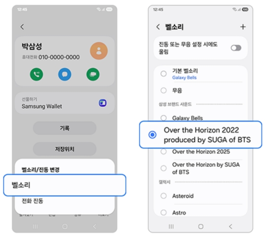 이제 벨소리를 선택하는 익숙한 화면이 다시 나타났네요. 여기서 아까와는 다른, 이 사람과 어울리는 특별한 노래를 골라주세요. 노래를 선택하면, 이제 이 사람에게 전화가 올 때마다 방금 고른 음악이 흘러나올 거예요. 이런 작은 설정 하나가 관계를 더 특별하게 만들어주는 기분이 든답니다.