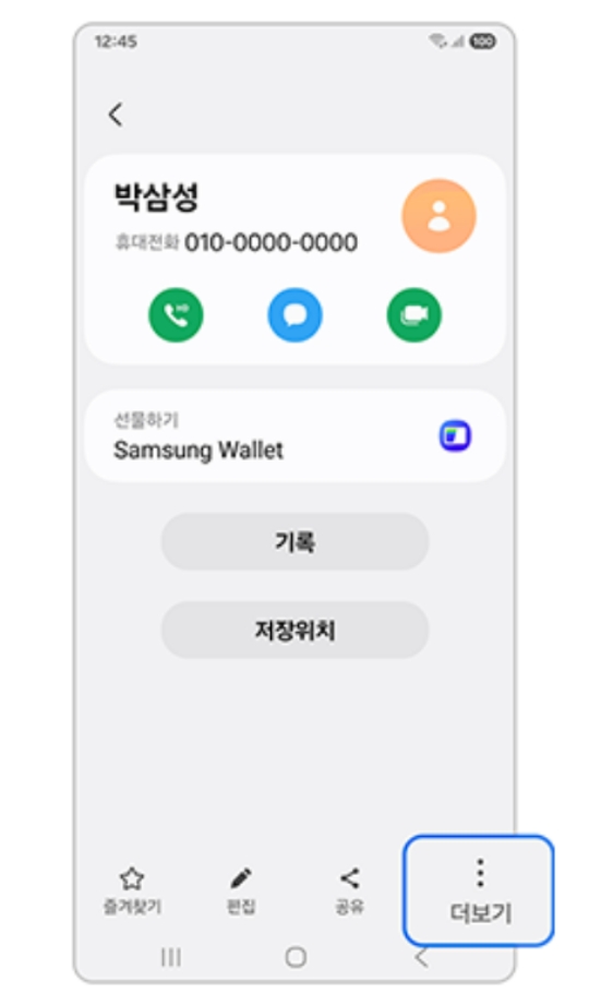 해당 인물의 연락처 상세 정보 화면이 나오면, 아래쪽 메뉴를 살펴봐 주세요. 즐겨찾기, 편집, 공유 등 여러 메뉴 중에서 가장 오른쪽에 있는 점 세 개 모양의 '더보기' 메뉴를 눌러야 숨겨진 추가 기능들을 볼 수 있습니다.