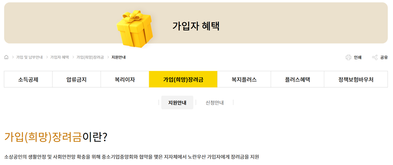 일부 지방자치단체에서는 신규 가입자를 위해 '가입(희망)장려금'이라는 지원 제도도 운영하고 있었어요. 중소기업중앙회와 협약을 맺은 지자체에서 가입자에게 매달 일정 금액을 추가로 적립해주는 건데요. 제가 사업하는 지역이 해당되는지 확인해보고, 이왕이면 이런 지원까지 받으면 더 좋겠다는 생각이 들었어요.