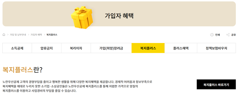 마지막으로 눈에 띈 건 '복지플러스'라는 서비스였어요. 이건 단순히 돈을 모으는 것 이상의 혜택인데요, 건강검진이나 휴양시설, 쇼핑몰 할인부터 경영 상담까지 다양한 복지 서비스를 저렴하게 이용할 수 있도록 해줘요. 혼자 모든 걸 챙겨야 하는 소상공인에게는 정말 유용한 혜택들이 많더라고요.