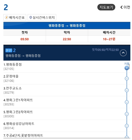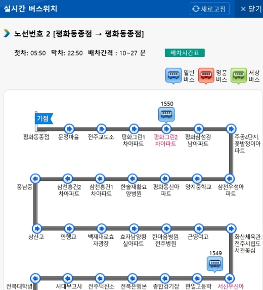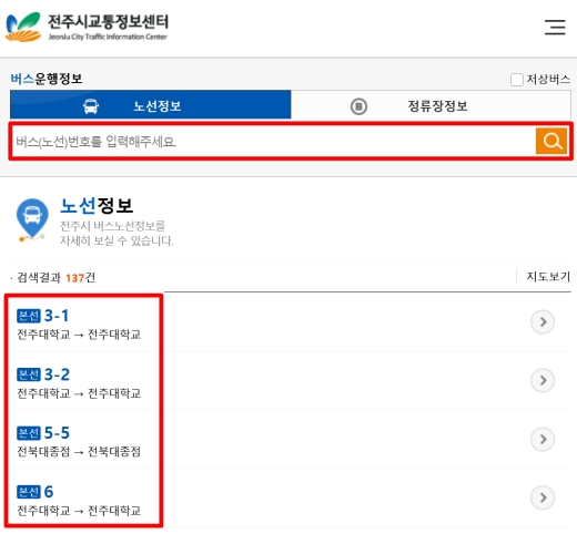 전주 시내버스 노선 시간표 검색 요금 (전주 교통정보센터)
