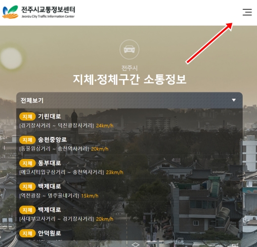 버스 정보를 찾아보려고 마음먹었을 때 어디서부터 시작해야 할지 막막할 수 있어요. 우선 인터넷 검색창에 '전주교통정보센터'를 입력해서 해당 사이트로 들어가 주세요. 사이트에 들어오시면 바로 전주의 교통 상황을 볼 수 있는데, 여기서 우리가 필요한 버스 정보를 찾으려면 오른쪽 위에 있는 세 줄 모양의 전체 메뉴를 선택해야 해요. 이게 숨겨진 메뉴를 열어주는 버튼이라고 생각하시면 돼요.