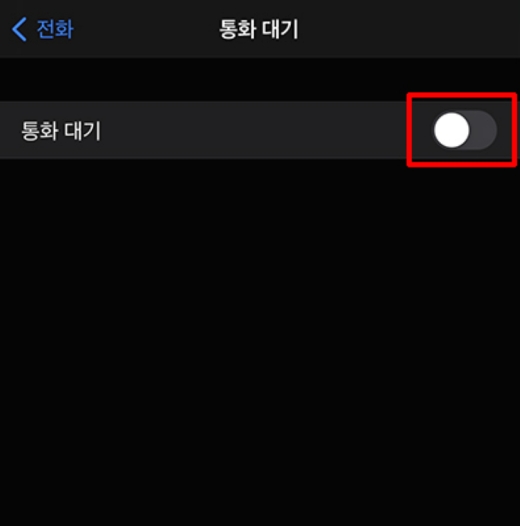 마지막 단계예요. '통화 대기' 화면으로 들어오면 오른쪽에 활성화 스위치가 하나 보일 거예요. 만약 이 스위치가 왼쪽으로 가 있고 회색으로 비활성화되어 있다면, 기능이 꺼져 있는 상태입니다. 이 스위치를 손가락으로 가볍게 한번 건드려서 오른쪽으로 이동시키면, 스위치가 초록색으로 바뀌면서 통화 중 대기 기능이 바로 활성화된답니다. 정말 간단하죠?