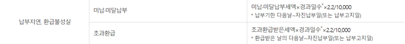 4. 신고 기한을 놓치면 본래의 세금에 더해 가산세가 붙게 됩니다. 특히 납부가 늦어질수록 미납세액에 경과일수와 이자율(1일 $10$만분의 $22$)을 곱한 금액이 추가되므로 가급적 빨리 처리하는 것이 좋습니다.
