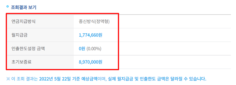 주택연금 수령액 조회