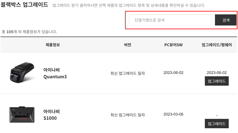 이제 고객님의 블랙박스 모델에 맞는 전용 뷰어 프로그램을 찾아야 합니다. 모델명이 많아 찾기 어렵다면, 오른쪽 위에 있는 검색창에 사용 중인 제품의 이름을 입력하여 간편하게 검색해 보세요.