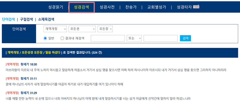 4. 성경을 읽다가 특정 단어나 구절이 궁금하다면 '성경검색' 기능을 활용할 수 있습니다. 검색창에 찾고 싶은 내용을 입력하면 관련된 구절들을 한 번에 모아볼 수 있어 편리합니다.