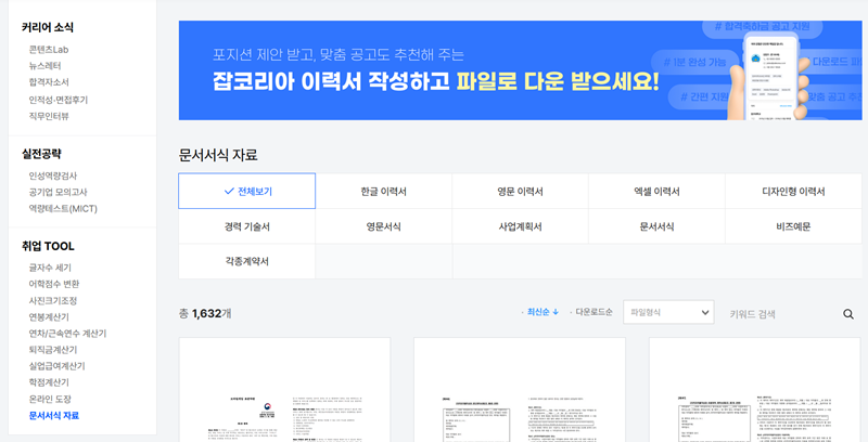 8. 마지막으로 문서서식 자료실에서는 이력서나 경력 기술서 같은 필수 양식을 다운로드할 수 있어요. 표준 이력서부터 디자인형 서식까지 다양한 파일이 준비되어 있어 필요에 따라 적절한 양식을 골라 바로 작성 준비를 마칠 수 있답니다.