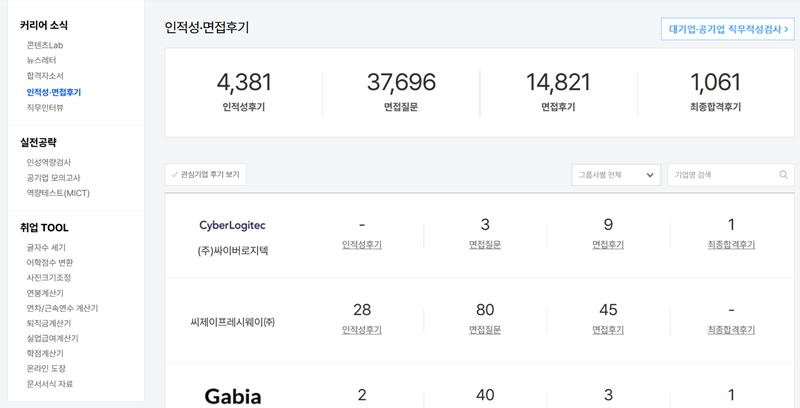 6. 자소서 외에도 인적성 검사나 면접 후기 같은 알짜 정보도 함께 찾아볼 수 있어요. 다른 지원자들이 겪은 생생한 후기와 기출 질문 등을 미리 파악해 두면 다음 전형을 준비하는 데에도 큰 도움이 될 거예요.