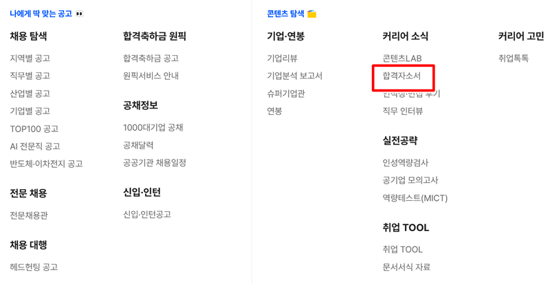 2. 커리어 관련 소식과 고민을 나누는 페이지가 나오는데 여기서 오른쪽 메뉴 리스트를 살펴봐주세요. 커리어 소식 카테고리 아래에 있는 합격자소서를 선택하면 실제 합격자들의 데이터를 열람할 수 있는 공간으로 연결됩니다.