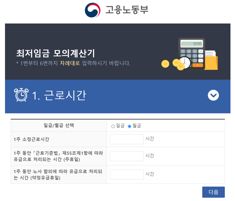[고용노동부 최저임금계산 - https://www.moel.go.kr/최저임금]