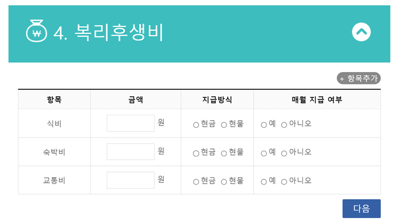 4. 식대나 교통비, 숙박비 같은 복리후생비도 임금 산정에 포함될 수 있으니 확인이 필요해요. 현금으로 받는지, 아니면 밥이나 물건 같은 현물로 받는지 체크하고 매월 지급되는지 여부까지 꼼꼼하게 표시해서 넘어가면 됩니다.