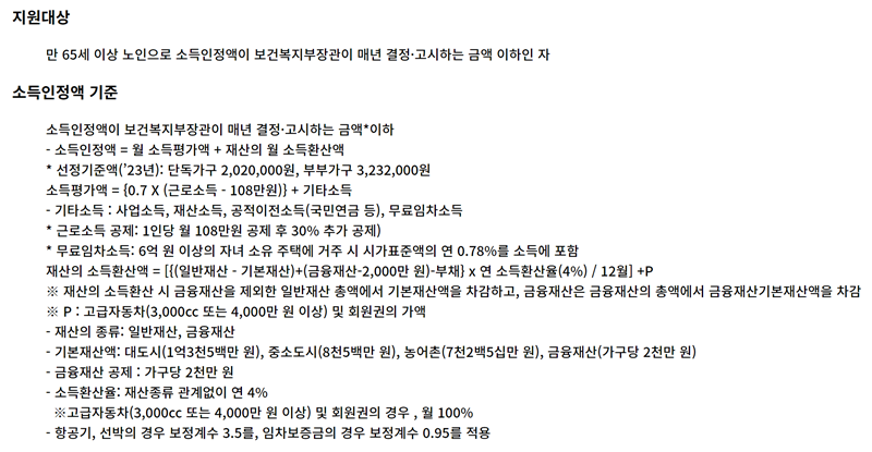 7. 마지막으로 지원 대상과 소득인정액을 계산하는 자세한 기준을 확인할 수 있습니다. 조금 복잡하게 느껴질 수 있지만, 어떤 항목들이 어떻게 반영되는지 궁금하다면 참고해보는 것이 좋습니다.