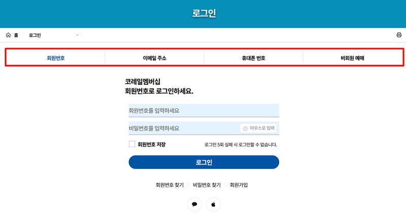 4. 예매를 계속 진행하기 위해서는 로그인이 필요합니다. 코레일 회원이 아니라면 별도의 가입 절차 없이 화면 상단의 '비회원 예매' 항목을 선택하여 편리하게 예매를 이어갈 수 있습니다.