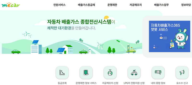 3. 자동차 배출가스 종합전산시스템 홈페이지에 접속하면 대기 환경 개선을 위한 다양한 서비스를 볼 수 있습니다. 이곳에서 차량의 배출가스 등급 조회나 저공해조치 신청 등 여러 정보를 확인할 수 있습니다.