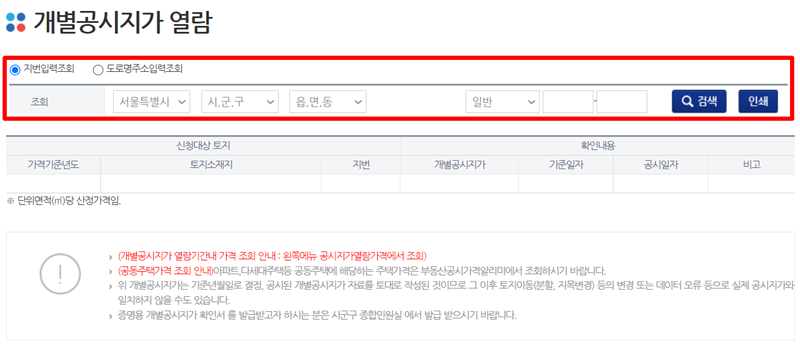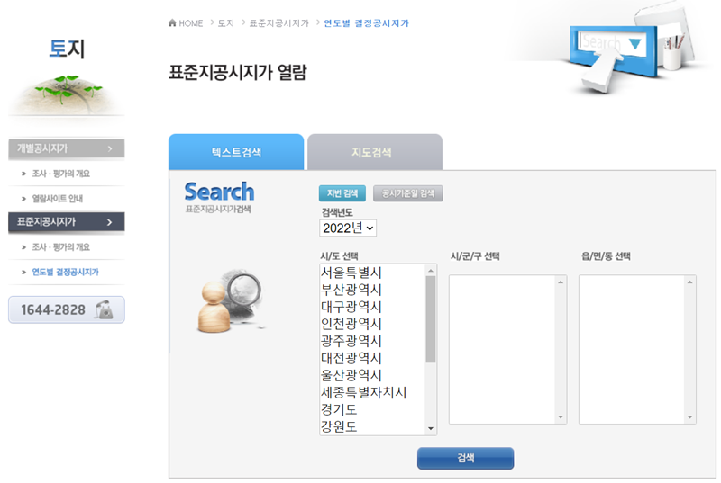 토지 공시지가 조회 사이트
