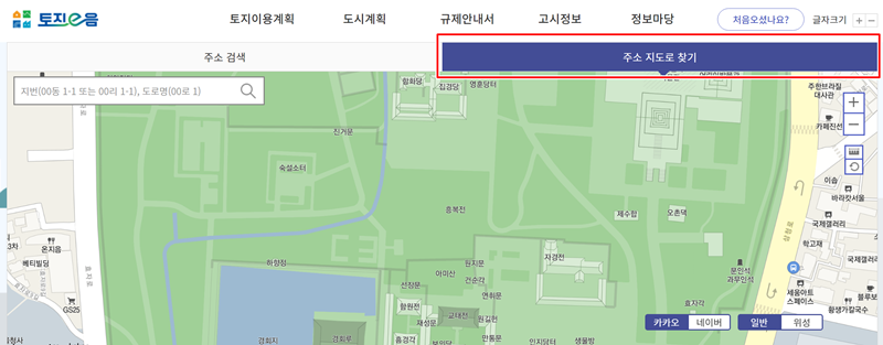 3. 주소를 정확히 모를 경우에는 '주소 지도로 찾기' 기능을 활용하는 것이 편리합니다. 지도를 직접 움직여가며 확인하고 싶은 위치의 필지를 선택할 수 있어 직관적입니다.