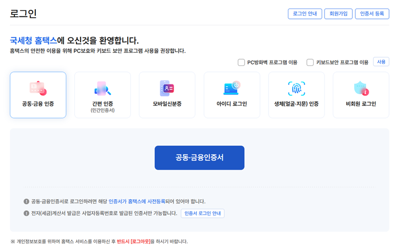 [국세청 홈택스 - https://hometax.go.kr/]